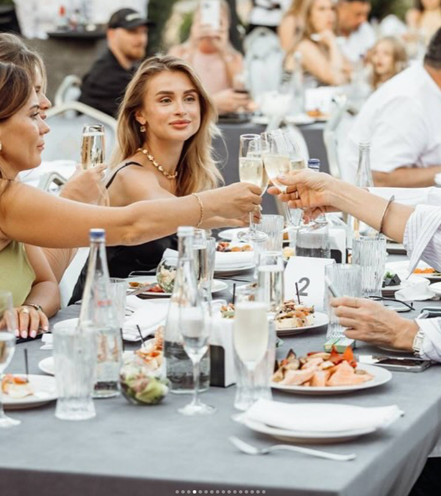 Ніжні спокійні пастельні кольори та висока світла стеля, комфортні мʼякі дивани, крісла і панорамні вікна створюють неповторний легкий простір та піднесений урочистий настрій. Келих прохолодного ігристого та легкий салат або паста