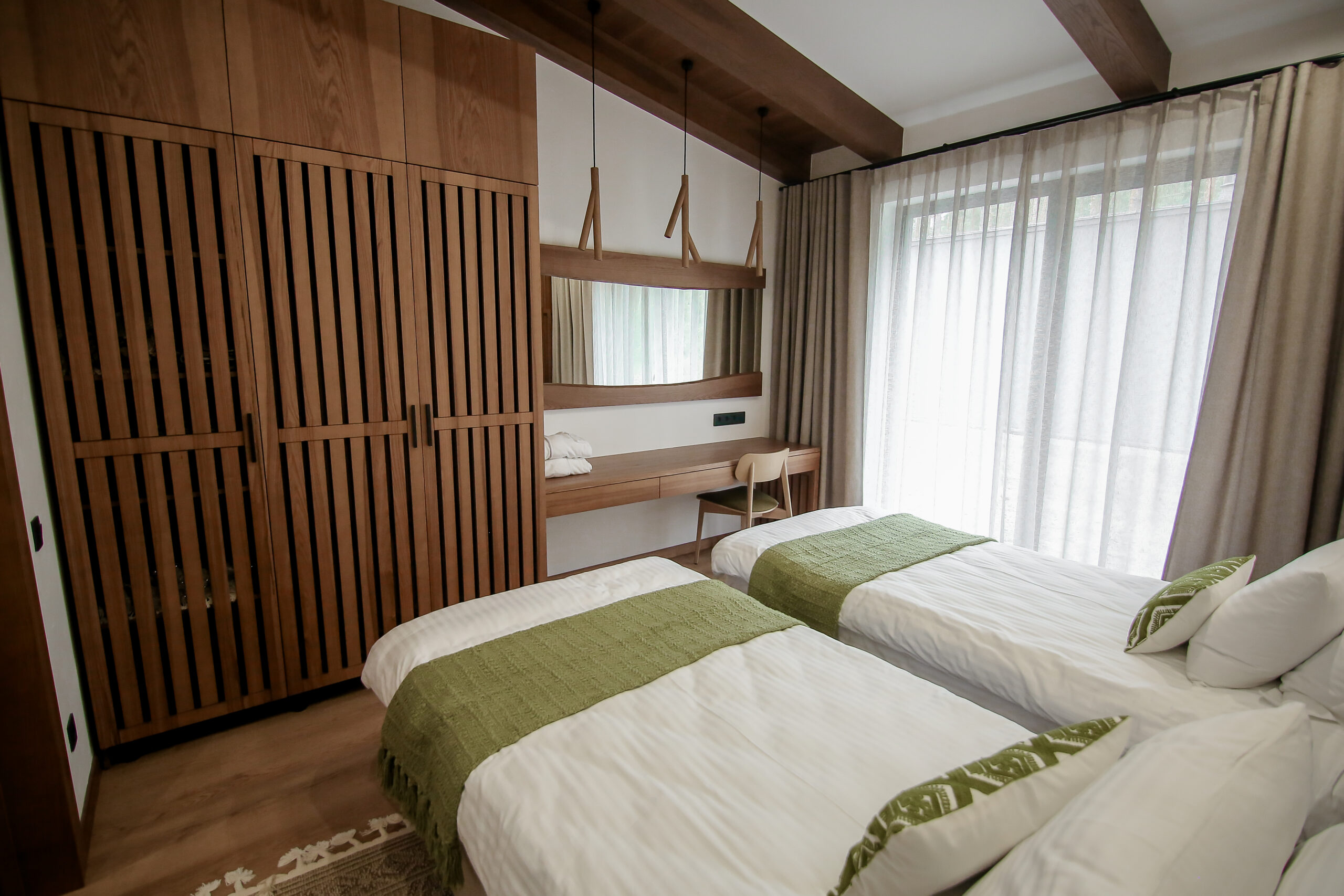 Шале для 6 гостей з власною кухнею, вітальнєю, трьома спальними кімнатами та трьома санвузлами – найбільше шале в Riverwood relax park, але не менш комфортне та затишне.
