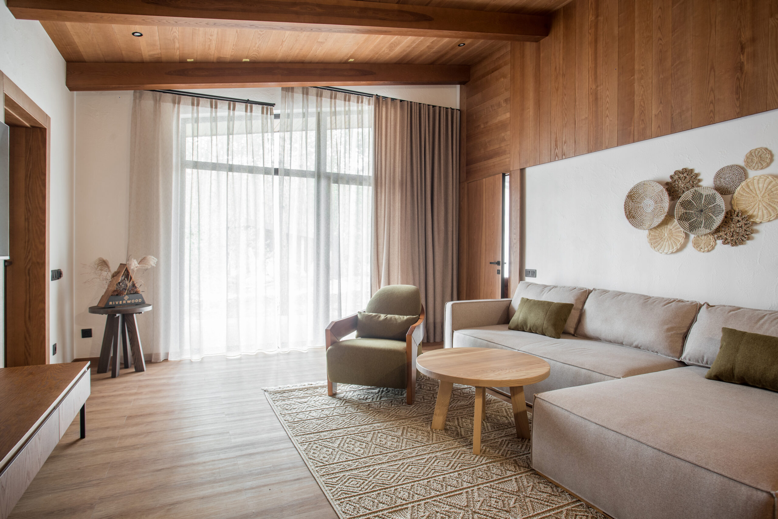Сучасний інтерʼєр, панорамне засклення та оздоблення натуральними матеріалами створюють невимушену та затишну атмосферу.